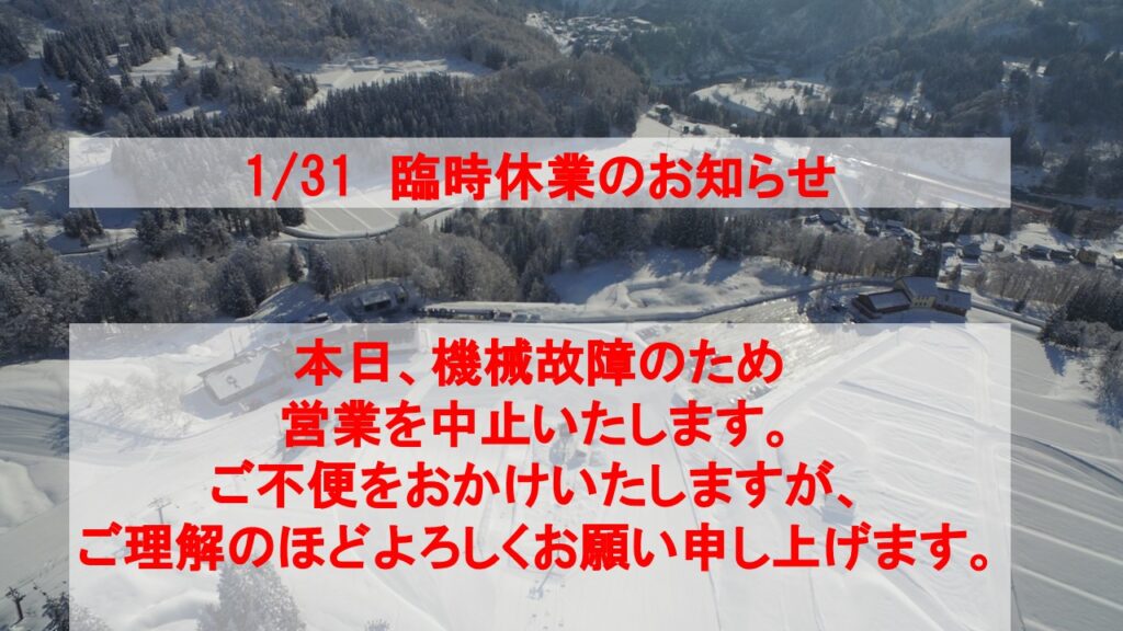 1/31 臨時休業のお知らせ